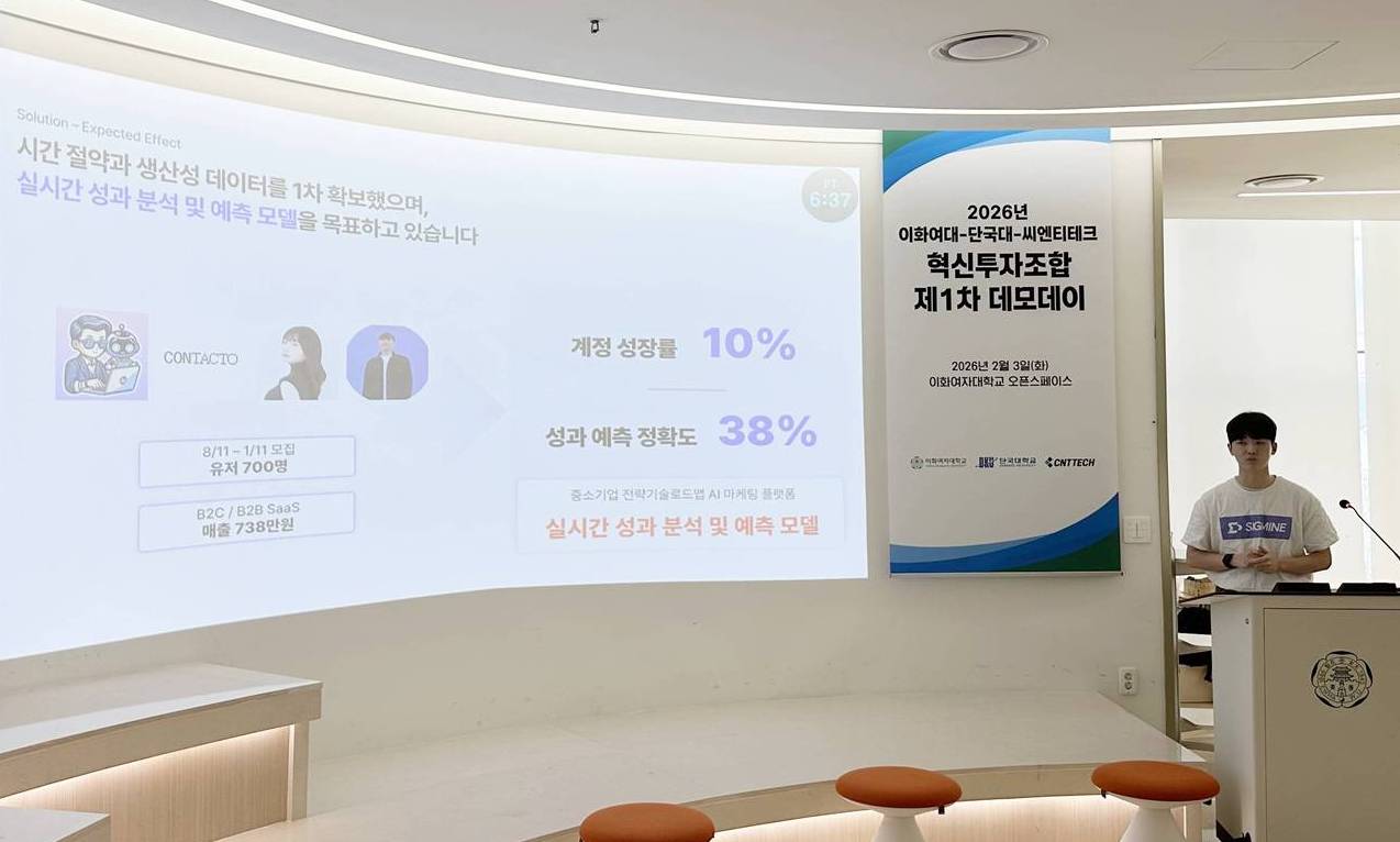 지난 3일(화) 이화스타트업 오픈스페이스, 혁신투자조합 발대식 및 IR 개최 “대학 주도의 AI‧반도체‧SDGs 등 딥테크 스타트업 기술사업화 본격 추진” 우리 대학이 이화여자대학교, 씨엔티테크(주)와 함께 총 9억 원 규모의 혁신투자조합을 결성하고, 유망 딥테크 스타트업을 대상으로 ‘2026 혁신투자조합 발대식 및 제1차 IR(투자유치설명회)’을 개최했다. 이번 혁신투자조합은 단국대, 이화여대, 씨엔티테크(주)가 공동으로 기금을 출자해 조성됐다. 대학이 보유한 연구 인프라와 기술사업화 역량에 민간 액셀러레이터의 투자‧스케일업 노하우를 결합한 대학-민간 협력형 투자 모델이라는 점에서 주목받고 있다. ▲ 창업지원단 소속 학생 창업자 안대철 대표(주식회사 시그마인)가 IR 발표를 진행하고 있다. 세 기관은 GP(공동업무집행조합원)로 참여해 향후 7년간 AI‧반도체‧SDGs 등 딥테크 스타트업을 대상으로 ▲대학 기술사업화 ▲초기 창업기업 발굴‧육성 ▲후속 투자 연계로 이어지는 선순환 투자 생태계 구축에 나설 계획이다. 지난 3일(화) 이화스타트업 오픈스페이스에서 열린 IR에는 각 기관이 추천한 유망 딥테크 스타트업 11개 사가 참여했다. 이 가운데 우리 대학 창업지원단의 입주기업, 초기창업패키지사업, 학생창업자 등으로 지원 받고 있는 △시그마인 △알에프솔루션 △오톤도 △트루와이어리스 △유니마스 △에코큐피드솔루션즈 등 6개 기업이 참여해 직접 투자유치 기회를 얻었다. ▲ 지난 3일(화) 이화스타트업 오픈스페이스에서 개최된 IR 참석자 단체사진 우리 대학 산학협력단 기술지주회사와 창업지원단은 지난해 10월 중소벤처기업부로부터 창업기획자(액셀러레이터)로 공식 등록되며, 스타트업 발굴부터 보육‧투자까지 이어지는 전주기 지원 체계를 갖춘 전문 창업지원기관으로 도약했다. 이번 혁신투자조합을 통해 시드머니 투자와 함께 TIPS(민관공동창업자발굴육성) 프로그램 연계, 연구·실험 인프라 활용 등 단계별 후속 지원을 제공할 계획이다. 안순철 총장은 “이번 혁신투자조합은 대학이 보유한 딥테크 기술과 아이디어가 투자로 연결되는 구조를 실험하고 고도화하는 출발점”이라며 “글로벌 기술 패러다임 전환기에 대응할 액셀러레이팅 모델을 구축하고 대학 주도의 지속 가능한 투자·창업 생태계를 구축해 나가겠다”라고 밝혔다. 한편, 창업지원단은 혁신적인 아이디어를 보유하고 있는 학생·교원·입주기업 등을 다각적으로 지원하며 경기 남부권 창업생태계 조성에 앞장서고 있다. 2014년 중기부 초기창업패키지사업을 시작으로 ▲특화역량 BI육성지원사업 ▲소상공인 디지털 특성화 대학 ▲KDB 창업 교육프로그램 ▲아이디어 사업화 지원사업에 연이어 선정되고 ▲창업보육센터 5년 연속 경영평가 최우수 ‘S등급’을 획득한 바 있다. [대학뉴스 제보] 죽전 홍보팀 : 031-8005-2032~5, 천안 홍보팀 : 041-550-1061
