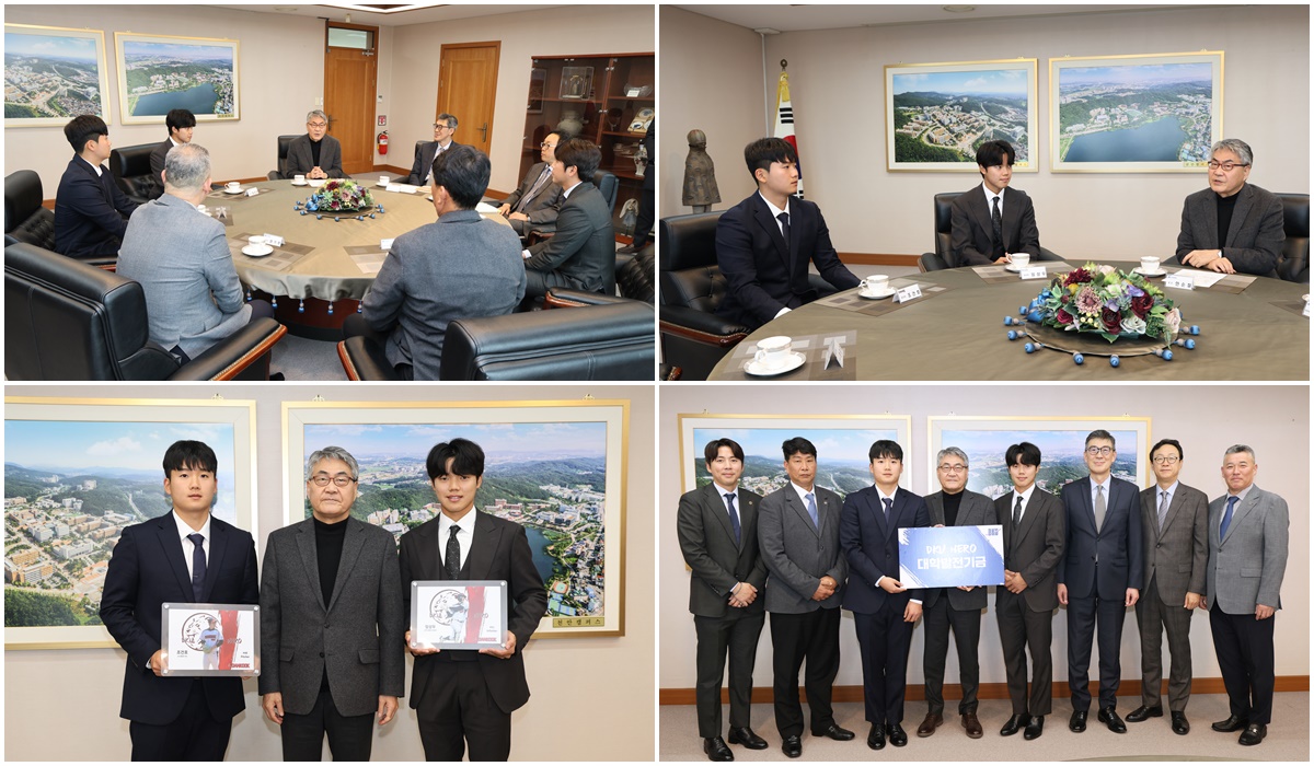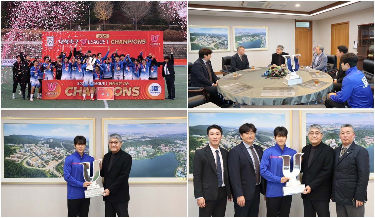 11월 26일, '2025 KUSF 대학축구 U-리그 왕중왕전' 결승전에서 울산대를 3:2로 제압하며 U리그 1부 우승을 차지한 축구부 선수단을 격려하고 축하의 인사를 전하였다. 우리 대학은 올해 추계대학축구연맹전(백두대간기), 1,2학년 대학축구연맹전(황가람기), U리그1 6권역 우승에 이어 U리그 왕중왕전까지 제패해 대학축구 4관왕을 달성하며 대학축구 최강자임을 입증했다.