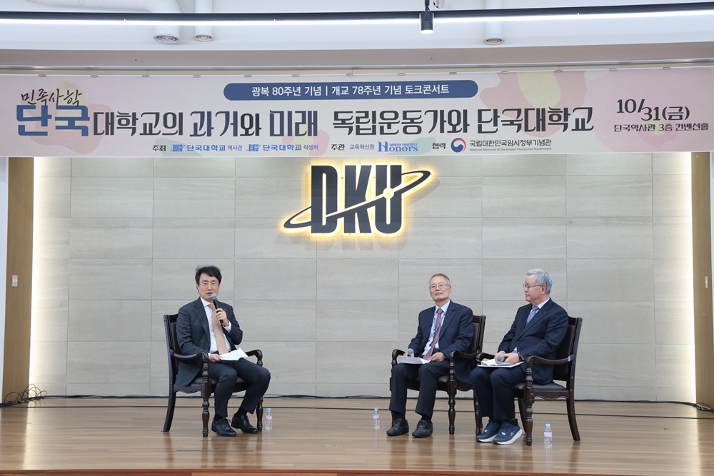DKU아너스센터(센터장 임수경)는 광복 80주년과 개교 78주년을 기념해 ‘민족사학 단국대학교의 과거와 미래’ 토크콘서트와 학술에세이 경진대회를 열었다.